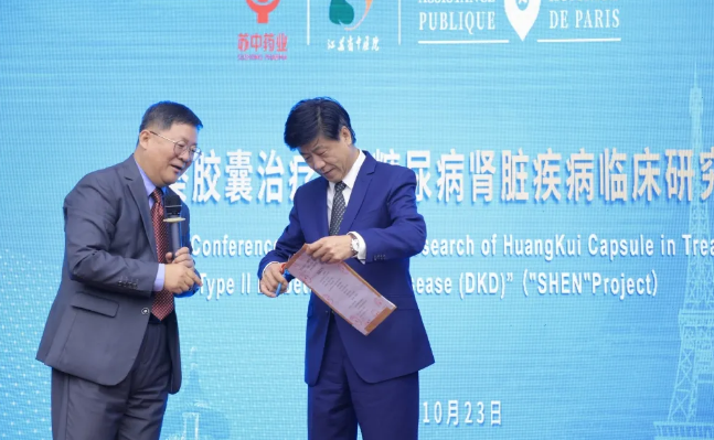 10月23日,中国和法国政府批准的中医药临床研究合作项目“黄葵胶囊治疗2型糖尿病肾脏疾病临床研究”总结会在中法两国通过视频连线召开,主会场设在中国·泰州,分会场设在法国·巴黎。