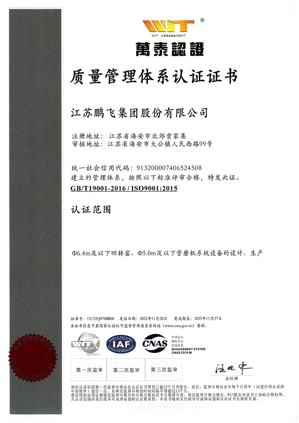 (2022年11月)质量管理体系认证证书