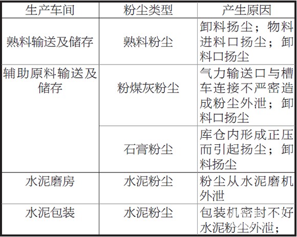 表1 水泥粉磨站粉尘污染来源统计表