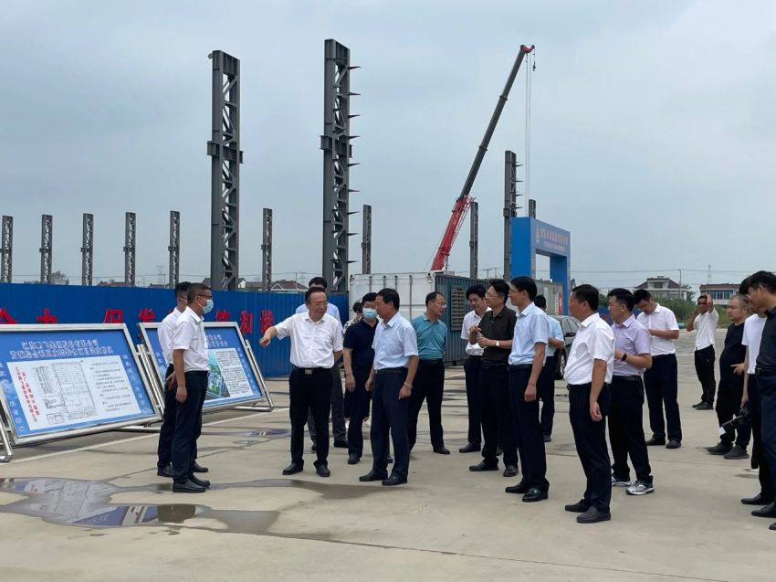 江苏suncitygroup太阳集团,太阳集团集团股份有限公司资源综合利用成套装备生产项目现场,黄卫成听取了公司董事长王家安关于资源综合利用成套装备生产项目的投资规模、用地面积、建筑面积、建设进度等情况的介绍。此外,他还就项目建设的手续审批、大件产品的运输、疫情对公司产品出口造成的影响等问题与王家安进行交流。