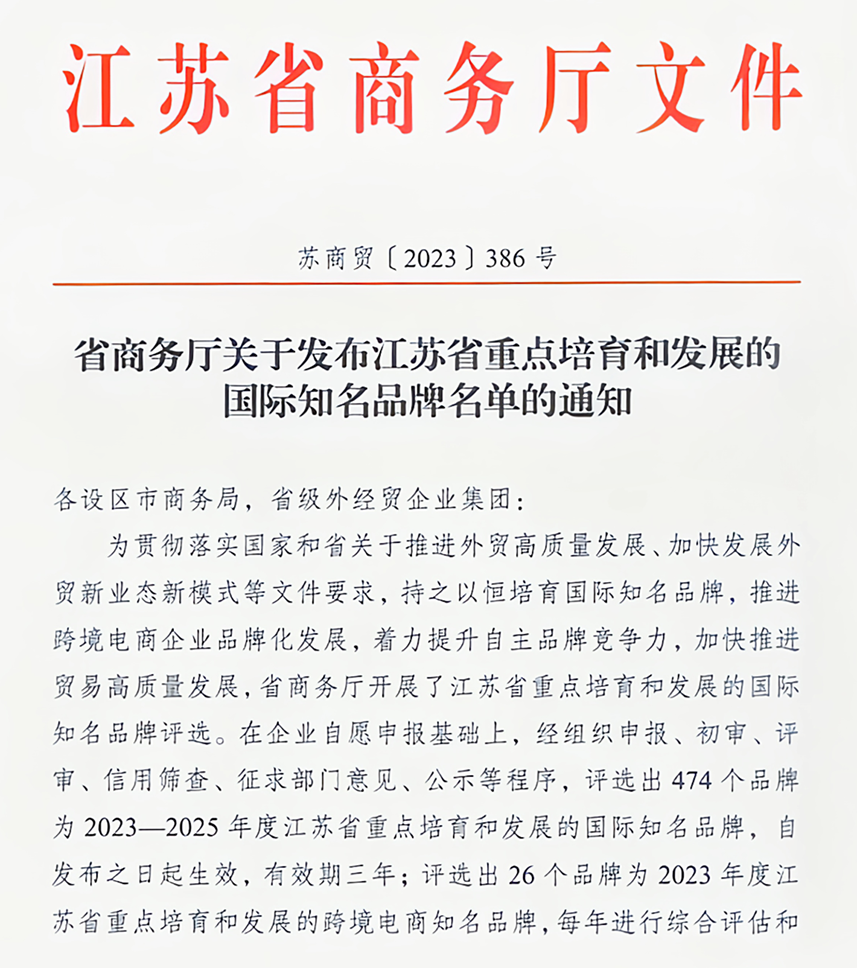 江苏省重点培育和发展的国际知名品牌的评选是江苏省商务厅为贯彻落实《中共江苏省委江苏省人民政府关于推进贸易高质量发展的实施意见》等文件要求,持之以恒培育国际知名品牌,推进跨境电商企业品牌化发展,着力提升自主品牌竞争力,加快推进贸易高质量发展的精神要求而组织实施。