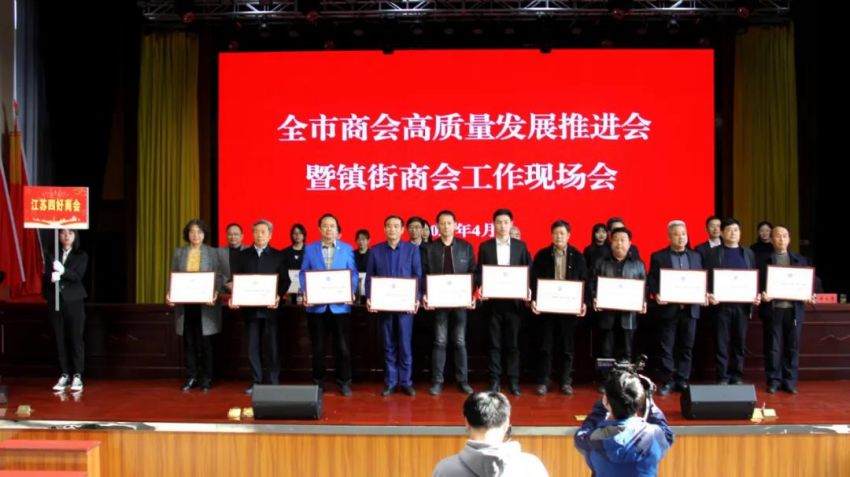 为学习贯彻中央、省商会工作会议精神,加快推进全市商会基层组织建设,推进商会组织高质量发展。4月19日下午,南通市工商联(总商会)在我镇隆重召开“全市商会高质量发展推进会暨镇街商会工作现场会”。南通市政府副市长、一级巡视员赵闻斌,江苏省工商联党组成员、副主席李晓林,南通市委统战部副部长、市工商联党组书记王虎,海安市委常委、组织部长、统战部长张明星,南通市工商联党组成员、副主席罗加宏,海安市政协副主席、工商联主席、总商会会长蔡祝平,大公镇党委书记金山存,党委副书记、镇长鲁竞等参加活动。出席会议的还有省工商联、市民政局相关处室领导,各县(市)区委统战部分管副部长、工商联主要负责人及分管领导,全市各镇街(园区)统战委员,商会会长代表,受表彰的全国抗疫先进典型,全国、省、市四好商会,荣获全市商会十大工作品牌的商会,商会十佳会长,十佳秘书长,部分市直商(协)会主要负责人,以及市工商联相关部室人员共计250余人。