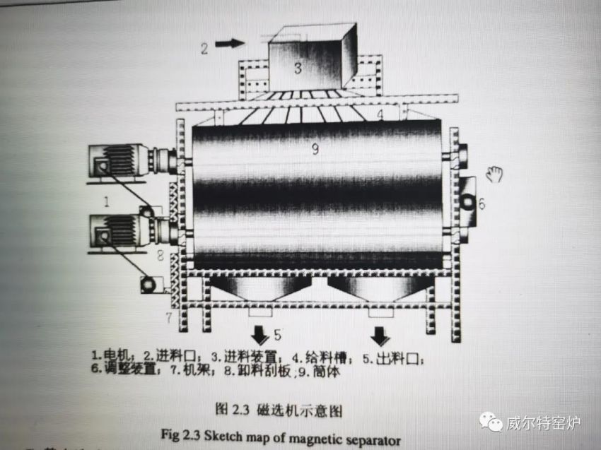 炙热的菱铁矿如果接触氧气很容易转化为r-Fe2O3 ,甚至弱性的a-Fe2O3 ,导致弱磁选困难,为了防止焙烧矿在出窑时弱磁性赤铁矿,故焙烧矿出窑方案设计为水封拉链水冷,出水温度一般为70°C 左右。然后进料仓,再经过磨碎分级进行磁选,选出精矿粉。